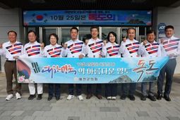 영남연합포커스 김진우 기자 | 예천군의회는 24일, 독도의 날을 맞아 군의회 전정에서 의원과 의회사무과 직원이 참가한 가운데 독도사랑 캠페인을 가졌다. 이날 의원들과 직원들은 ‘독도 티셔츠’를 입고 출근해 결연한 구호를 외치며, 우리나라 고유 영토인 독도에 대한 관심을 높이고 수호 의지를 다졌다. 강영구 의장은 “독도는 역사적, 지리적, 국제법적으로 명백한 우리 고유의 영토”라며, “군민 모두가 독도에 대한 관심과 자긍심을 가지고, 후손들에게 올바른 역사 인식을 물려줄 수 있도록 지속적인 관심을 가져달라”고 말했다. 한편, 독도의 날은 고종황제가 1900년 10월 25일 독도의 주권이 대한제국에 있음을 칙령으로 선포한 날을 기념하고, 독도가 대한민국의 고유 영토임을 공포하기 위해 제정됐다.