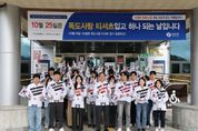 영남연합포커스 김진우 기자 | 영양군은 10월 24일 오전 독도의 날을 기념해 군청사 입구에서 오도창 영양군수를 포함한 공직자 60여 명이 참석한 가운데 ‘독도 사랑 티셔츠 입기 운동’행사를 진행했다. 영양군의 공직자들부터 앞장서서 독도 사랑 티셔츠를 입고 근무하면서 독도의 날 의미를 되새기고, 온 국민 하나 되기 운동에 동참하는 모습을 보였다. 이날 행사는 지난 1900년 10월 25일 대한제국의 고종황제가 독도를 울릉도에 편입시키는 칙령 제41호를 반포한 역사적으로 뜻깊은 날을 기념하기 위해 직원들 모두 독도 사랑 티셔츠를 입고 태극기를 손에 들고 우리 땅 독도 지키기 운동에 앞장설 것을 다짐하는 계기가 됐다. 오도창 영양군수는 “독도의 날 행사를 통해 영양군민 모두가 독도에 대한 더 많은 관심과 애정을 가졌으면 한다.”라며 “‘독도 사랑 티셔츠 입기 운동’은 알고는 있지만 행동으로 실천하기 힘든 독도 사랑을 이번 기회를 통해 나타내며, 공직자부터 먼저 독도사랑에 앞장서는 모습을 보여줌으로써 우리 고유 영토의 소중함을 다시금 되새기는 순간이 됐길 바란다.”라고 말했다.