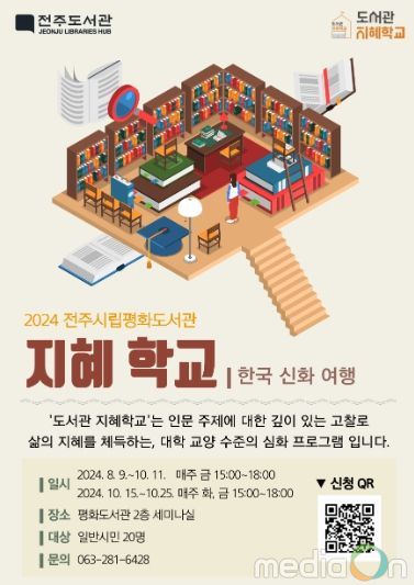 최현창 전주시 도서관본부장은 “시민들이 평화도서관 지혜학교를 통해 문학과 역사, 철학 등 인문학의 주요 요소가 모두 반영된 신화를 탐구하며 인문학적 상상력을 일깨우고, 전통과 현대를 연결해 ‘인간이란 무엇인가’를 성찰하는 여정이 되기를 바란다”고 말했다.