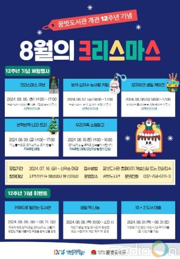 개관 12주년을 기념해 열리는 이번 행사에서는 ‘8월의 크리스마스’를 주제로 사서와 전문 강사가 진행하는 다양한 체험행사와 특별 이벤트가 준비됐다.