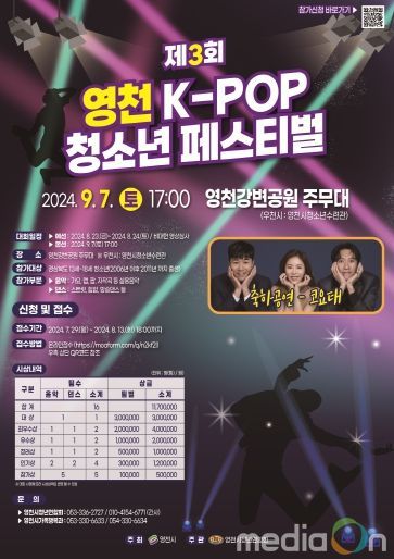 영남연합포커스 기자 | 영천시는 오는 9월 7일 영천강변공원 주무대에서 ‘제3회 영천 K-POP 청소년 페스티벌’을 개최한다고 밝혔다.