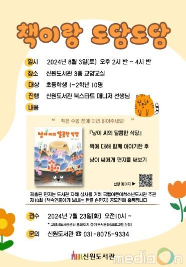 참여 신청은 7월 23일 오전 10시부터 고양시도서관센터 누리집을 통해 가능하며, 초등학생 1~2학년 10명을 선착순으로 모집한다.