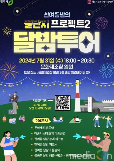 ‘문화제조창 꿀단지프로젝트2-달밤투어’ 참여 신청은 24일 오전 10시부터 청주문화재단 홈페이지 신청링크 또는 홍보물 내 QR코드로 진행한다. 참가자 선정은 개별 통보된다.