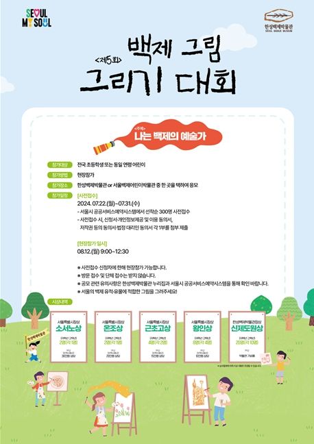 한편, 8월 12일에는 여름방학을 맞아 전국의 어린이를 대상으로 '제5회 백제 그림 그리기 대회'를 개최한다. ‘나는 백제의 예술가!’를 주제로 한성백제박물관 전시실에서 백제 유물을 직접 보고, 자유롭게 나만의 백제 유적과 유물을 그리는 대회다.