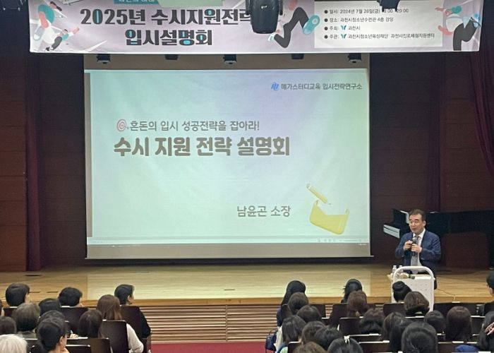 영남연합포커스 기자 | 과천시는 지난 26일 저녁 청소년수련관에서 관내 수험생 및 학부모 200명이 참석한 가운데, ‘2025년 수시지원전략 입시설명회’를 개최했다.