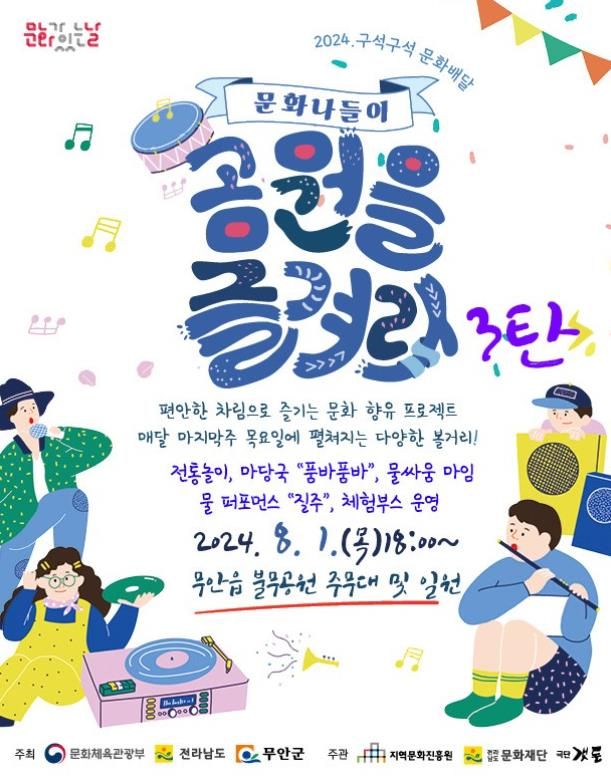 영남연합포커스 기자 | 전남 무안군은 8월 1일 18시에 무안읍 불무공원에서 문화나들이 ‘공원을 즐겨라’ 문화예술 행사를 개최한다.