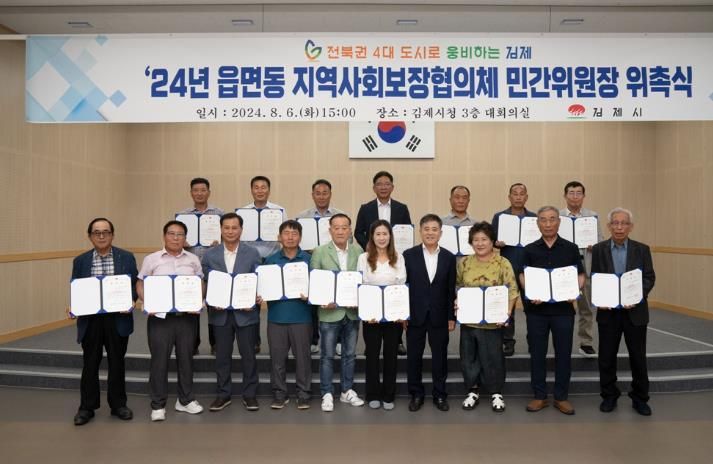 정성주 김제시장은 “이번 위촉식을 통해 지역사회 복지안전망 구축을 위한 협의체 위원들의 책임감과 소속감을 강화하는 계기가 마련됐다.”며 “앞으로 2년간 지역사회보장협의체 위원들이 활동이 어려운 이웃을 보살피고, 복지사각지대 발굴에 앞장서 시민이 행복한 김제시가 될 수 있도록 힘을 모아줄 것을 당부드린다”고 전했다.