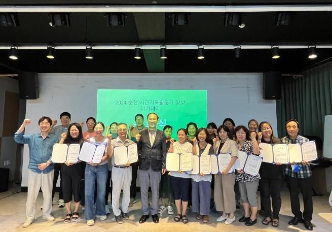 영남연합포커스 김진우 기자 | (재)순천문화재단은 20일 순천문화재단 1층 소규모 공연장에서 ‘2024 시민기록활동가 양성 아카데미’ 교육과정을 성공적으로 마무리하고 17명에게 수료증을 수여했다.