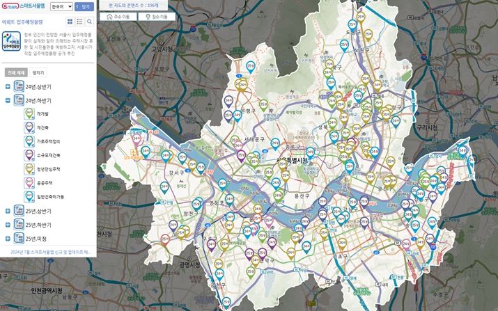 'PDF로 제공하던 ‘입주전망 지도’ 주변 현황까지 볼 수 있는 모바일 웹 서비스로 ‘서울 시내 아파트 입주전망’은 서울시 누리집에서 내려받을 수 있으며, 입주예정 물량 지도 서비스는 모바일웹 ‘서울맵’에서 이용할 수 있다.