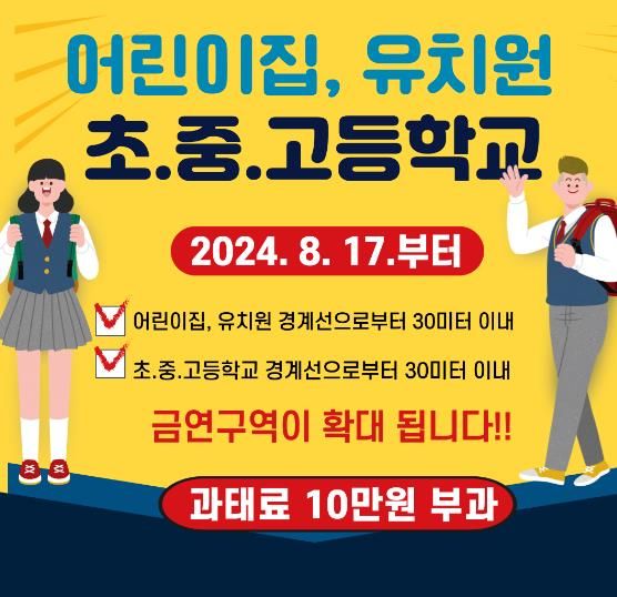 금연 구역 대상 교육시설 또한 기존 어린이집, 유치원에서 초·중·고교까지 확대됐다.