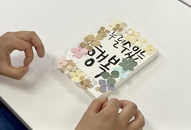 한 참여자는 “나의 작품을 만들고 공유하는 시간을 갖게 되어 기쁘다”라며 “특히 캘리그라피의 재미를 알려주신 선생님들께 감사하다”라고 소감을 전했다.