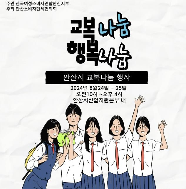안산소비자단체협의회가 주최하고 한국여성소비자연합 안산지부에서 주관하는 이번 교복 나눔 행사는 지난 2013년부터 시작됐다. 관내 중·고등학교 졸업생들의 교복을 기증받아 세탁과 분류를 거쳐 필요한 학생들에게 저렴하게 판매하고, 수익금은 지역 학생들에게 장학금으로 전달된다. 이를 통해 가계 부담을 줄이고 나눔과 환경보전을 실천하자는 취지다.