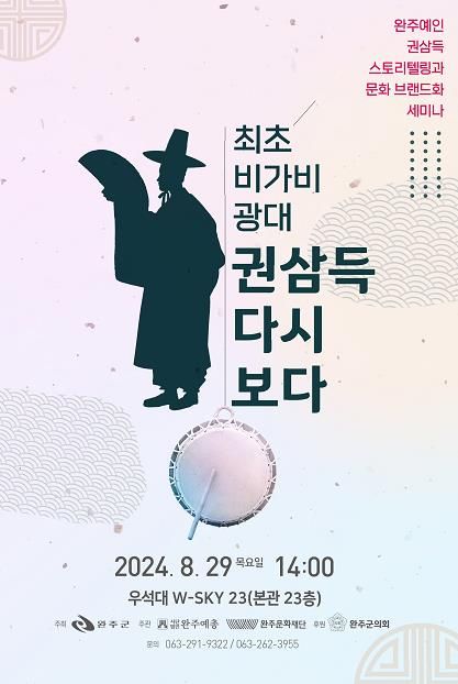 영남연합포커스 김진우 기자 | 완주군과 완주예총, 완주문화재단이 함께‘최초 비가비 광대 권삼득 다시 보다’세미나를 오는 29일 오후 2시, 우석대학교 본관 23층 완주․우석전망대에서 개최한다.