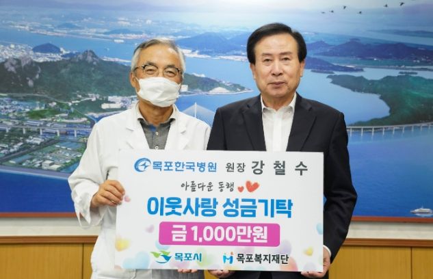 영남연합포커스 김진우 기자 | 목포한국병원 강철수 원장이 지난 23일 이웃사랑 성금 1,000만원을 목포복지재단에 기탁했다.