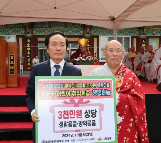 영남연합포커스 김진우 기자 | 의성군은 지난 6일 대한불교 천태종 산하의 (사)나누며하나되기가 군에 3,000만원 상당의 방역 및 생활용품을 기탁했다고 밝혔다.