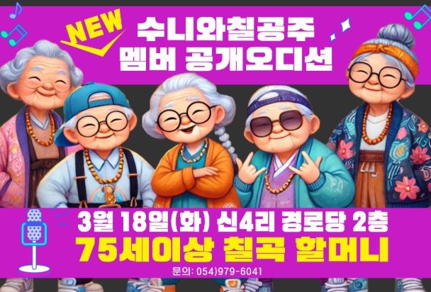 영남연합포커스 김진우 기자 | 세계 최고령 래퍼 그룹‘수니와칠공주’가 새 멤버를 모집한다.