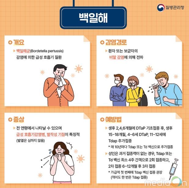 백일해는 제2급 법정 감염병으로 기온과 습도 변화에 민감해 여름철에 많이 발생하며, 질병관리청 감염병 통계에 따르면 7월 6일 기준 전국 환자수가 6986명으로 지난 10년 대비 가장 많이 발생한 것으로 나타났다.