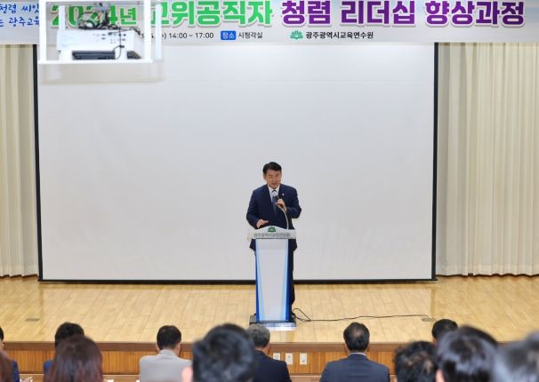 영남연합포커스 김진우 기자 | 광주교육연수원은 4일 광주시교육청 및 산하기관 4급 이상 고위공직자 50여 명을 대상으로 ‘2024년 고위공직자 청렴리더십 향상 과정 연수’를 실시했다.