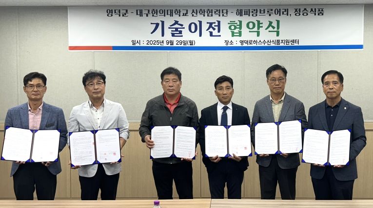 이번 기술이전은 영덕군이 ‘영덕로하스 거점 단지 활성화 사업’을 통해 해양자원의 고부가가치를 높이는 기술개발을 진행해 온 결과로, 관내 기업의 경쟁력 강화와 지역 경제 활성화에 이바지할 것으로 기대된다.