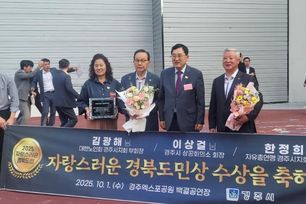 영남연합포커스 김진우 기자 | 경주시는 1일 열린 ‘2025 자랑스러운 경상북도민상’ 시상식에서 경주시민 3명이 수상자로 선정되는 영예를 안았다고 밝혔다.