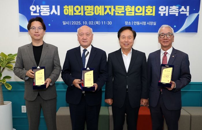 영남연합포커스 김진우 기자 | 안동시는 10월 2일 해외명예자문협의회 자문위원 3명에 대한 추가 위촉식을 개최했다. 해외명예자문협의회는 해외에서 활발하게 활동하는 한인 인사 8명으로 구성됐으며 임기는 2027년 4월까지 2년이다. 이들은 안동시와 세계 각국을 연결하는 가교로서, 국제교류․협력 확대에 핵심적인 역할을 맡게 된다.