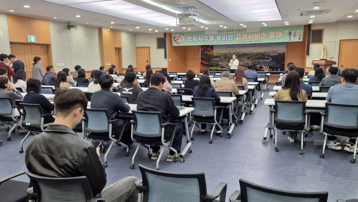 외부 전문강사를 초빙해 진행된 이번 교육은 ‘행복지수를 높이는 고객서비스 응대’라는 주제로 친절을 위한 언어와 태도, 우리 사회의 친절 개념에 대한 인식 점검, 언어의 온도를 높이는 작은 변화와 마음 챙김 등 교육 참가 공무원들과 직접 소통하고 생각을 나누는 방식으로 실시됐다.