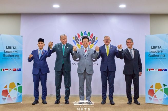 영남연합포커스 기자 | 주요 20개국(G20) 정상회의 참석을 위해 남아프리카공화국을 방문한 이재명 대통령은22일(현지시간) 오후 우리나라, 멕시코, 인도네시아, 튀르키예, 호주 5개국으로 구성된 믹타(MIKTA) 회원국 정상들과 회동했다.