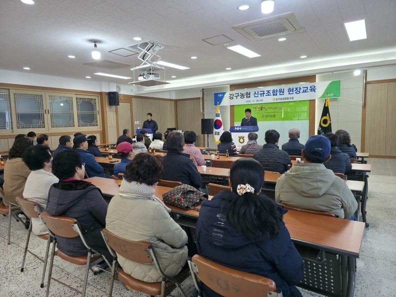 교육은 지난 11월 26일 강구농협 대강당에서 최근 1년간 새로 가입한 조합원을 대상으로 실시하였으며, 30여명의 참가들은 시종일관 진지한 자세로 농협에 대한 체계적인 지식을 습득한 계기가 되었다.