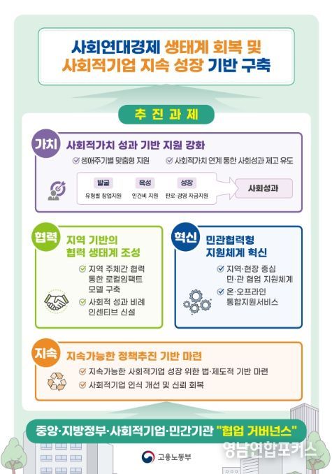 영남연합포커스 기자 | 고용노동부는 가치, 협력, 혁신, 지속가능성을 기본전략으로 제시하고 사회적기업 생태계 회복과 지속가능한 성장 기반 구축에 본격적으로 나선다.