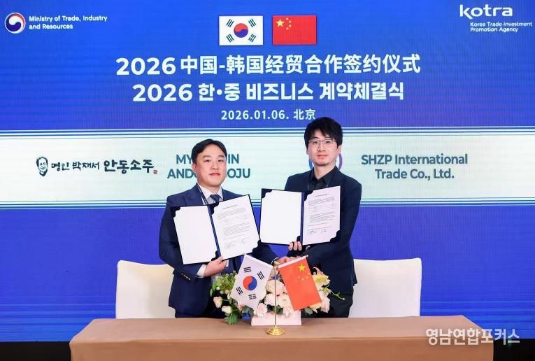 영남연합포커스 김진우 기자 | 안동시는 대한민국 전통 증류주인 안동소주가 2026 한․중 비즈니스 파트너십 행사에서 중국 유력 주류 유통사와 미화 140만 달러(한화 20억 원) 규모의 수출 계약을 체결했다고 1월 7일 밝혔다.