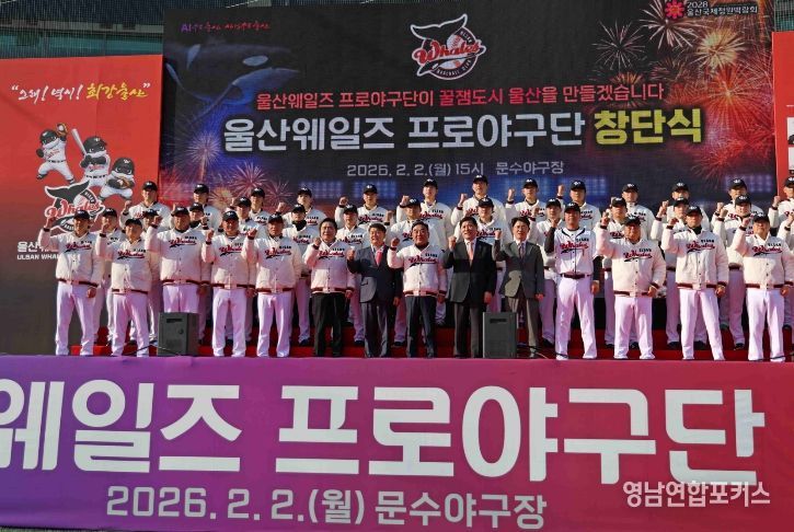 영남연합포커스 기자 | 울산광역시(시장 김두겸)는 2월 2일(월) 울산 문수야구장에서 '울산 웨일즈' 공식 창단식을 개최했다.