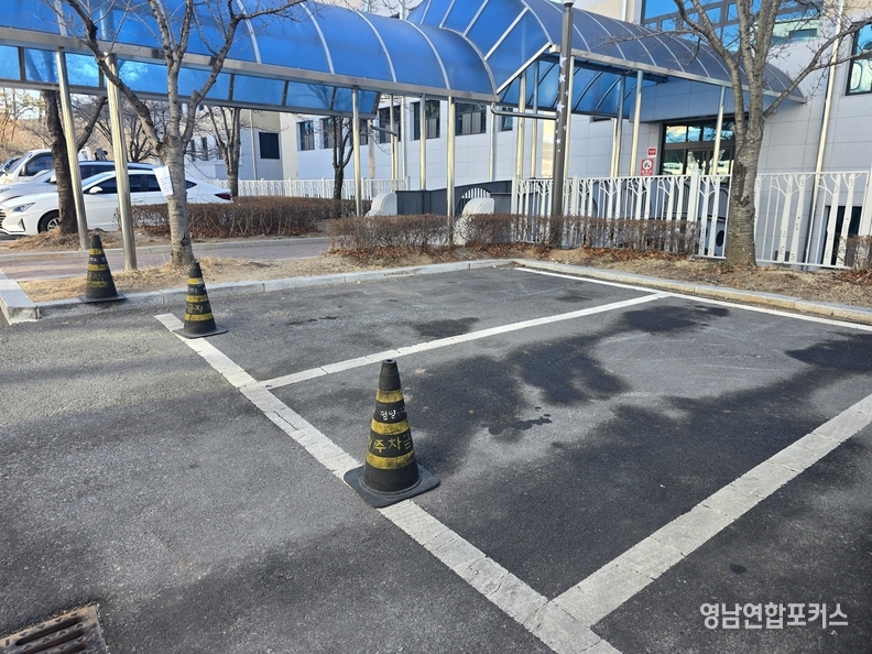 9일 오전 취재차 영양군의회를 방문한 결과, 청사 인근 주차면 여러 곳에 고깔형 표지물이 설치돼 있었고, 표지에는 ‘영양군의회’, ‘주차금지’ 등의 문구가 적혀 있었다. 일부 공간은 일반 차량의 접근이 사실상 차단된 상태였다. 현장을 지켜본 주민은 “군청은 늘 주차가 전쟁인데, 특정 직위를 위한 공간을 상시 확보하는 것이 맞느냐”고 반문했다.
