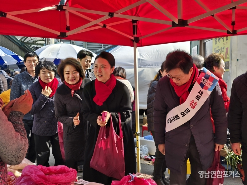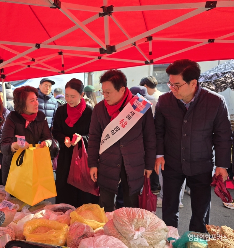 설 명절을 앞두고 지역 전통시장에 활기가 돌았다. 설대목을 맞아 영덕군 영해면에 위치한 영해만세시장에서 지역 국회의원과 자치단체장, 지방의원, 기관·단체장 등이 함께 장보기에 나서며 상인들과 주민들을 격려했다.