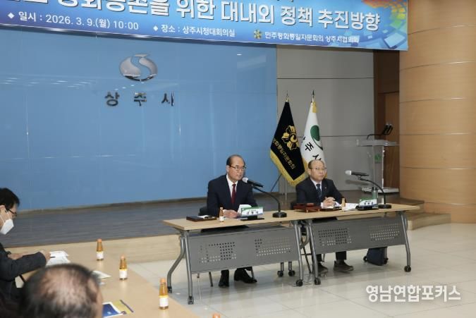 영남연합포커스 김진우 기자 | 민주평화통일자문회의 상주시협의회는 3월 9일 오전 10시 상주시청 대회의실에서 상주시장, 자문위원 등 50여 명이 참석한 가운데 ‘한반도 평화공존을 위한 대내외 정책 추진방향’을 주제로 2026년 1분기 정기회의를 개최했다.