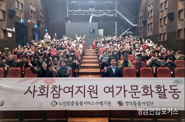 영남연합포커스 김진우 기자 | (재)영덕복지재단 영덕돌봄사업단은 노인 맞춤 돌봄서비스 이용하는 어르신들의 여가와 문화 활동을 지원하기 위해 지난 9일 영덕무형문화재전수관에서 ‘설레는 봄날, 시네마 데이트’를 진행했다.