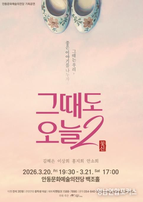 이러한 연극 프로그램의 시작을 알리는 작품으로 기획된 연극 ‘그때도 오늘 2 : 꽃신’은 3월 20일 오후 7시 30분과 3월 21일 오후 5시 안동문화예술의전당 백조홀에서 공연된다. 이번 작품은 '공연배달서비스 간다'의 대표 레퍼토리 작품 ‘그때도 오늘’의 두 번째 이야기로, 탄탄한 대본과 배우들의 진정성 있는 연기로 관객들에게 큰 사랑을 받고 있는 작품이다.