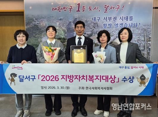 영남연합포커스 김종설 기자 | 대구 달서구가 한국사회복지사협회가 주관하는‘2026 지방자치복지대상’에서 기초자치단체 부문 대상을 수상하며 복지 선도도시로서의 위상을 다시 한번 입증했다.