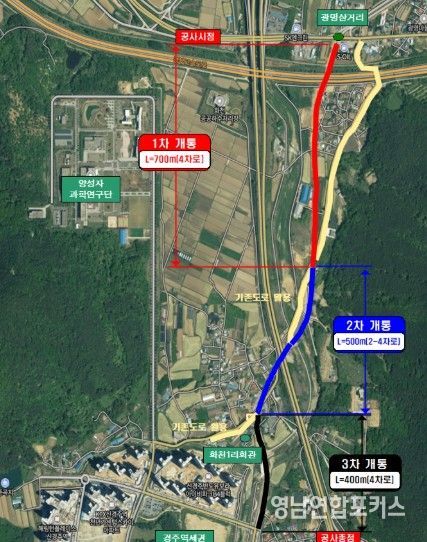 최혁준 경주시장 권한대행은 “광명~화천 도로는 신경주역세권과 도심을 잇는 핵심 기반시설”이라며 “단계별 개통으로 시민 불편을 줄이고 교통환경 개선 효과를 조기에 체감할 수 있도록 하겠다”고 말했다.
