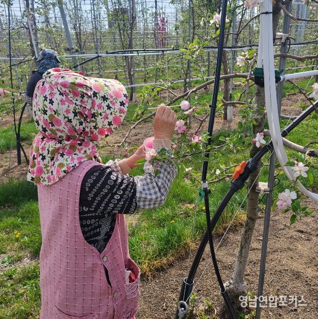 영남연합포커스 관리자 기자 | 안동시농업기술센터는 최근 이상기상으로 인한 사과 개화기 저온 피해와 화분 매개곤충(벌)의 활동 감소에 대응해, 안정적인 결실을 위해 농가에서 인공수분을 적극적으로 실시해 줄 것을 당부했다.