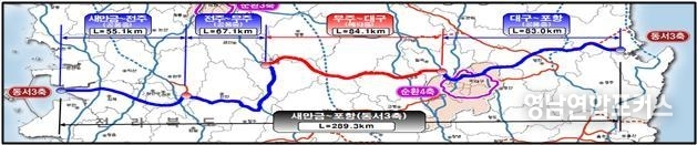 한편, 1992년 국가간선도로망 수립 이후 장기 미구축된 동서3축 고속도로는 전체 구간(새만금~포항) 중 대구~포항(2004년), 전주~무주(2007년), 새만금~전주(2025년) 구간은 이미 개통되었으며, 이번 무주~성주~대구 구간이 예타 통과 후 준공될 경우 명실상부한 동서 화합의 길이 완성된다.