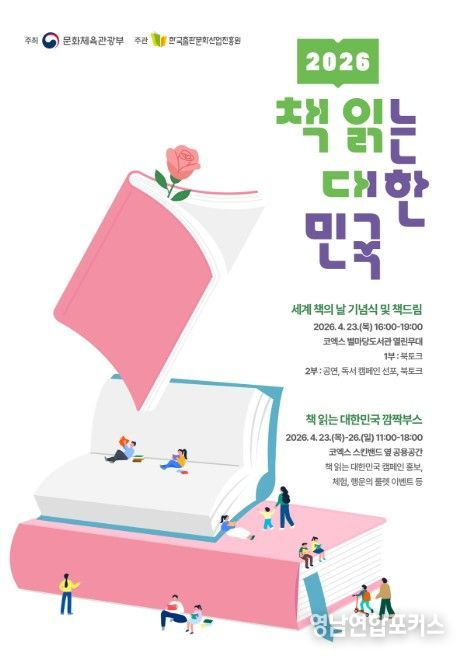 영남연합포커스 기자 | 문화체육관광부는 한국출판문화산업진흥원, (재)책읽는사회문화재단과 함께 4월 23일 오후 4시, 서울 코엑스 별마당도서관에서 대국민 독서 캠페인 ‘2026 책 읽는 대한민국’의 시작을 선포하고 캠페인을 본격적으로 추진한다. ‘책 읽는 대한민국’은 인공지능(AI) 시대에 국민의 생각하는 힘을 기르고, 지역 곳곳에 ‘일상 속 책 읽는 즐거움’을 확산하기 위해 마련한 캠페인이다. 최휘영 장관은 캠페인 선포식을 찾아 ‘책 읽는 즐거움’ 확산에 앞장선다.