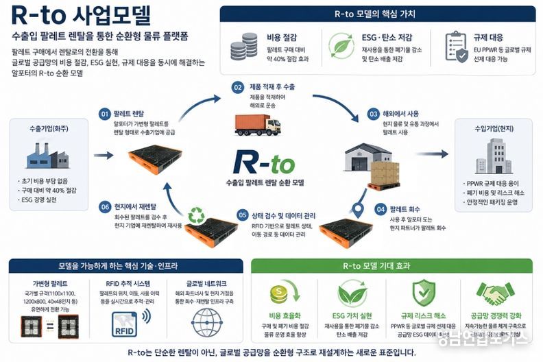 이러한 가운데 국내 물류기업 알포터가 추진 중인 ‘R-to 수출입 팔레트 렌탈 사업’이 기존 구조를 근본적으로 바꾸는 대안으로 주목받고 있다. 심층 취재 결과, 이 사업은 단순한 렌탈 모델을 넘어 글로벌 공급망 운영 방식을 재편하는 플랫폼형 비즈니스로 확장되고 있는 것으로 나타났다.