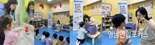 영남연합포커스 김종설 기자 | 대구 중구보건소는 지난 24일 대봉서한어린이집을 시작으로 관내 어린이집 영유아를 대상으로 한 감염병 예방 손씻기 교육 프로그램인 ‘깨끗손 명탐정’을 10월까지 운영한다고 밝혔다.
