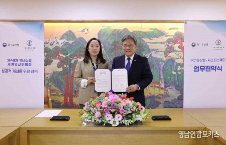 영남연합포커스 기자 | 국가유산청은 저스피스재단과 4월 24일 오후 2시 국립고궁박물관(서울 종로구)에서 제48차 유네스코 세계유산위원회 회의(48th Session of the World Heritage Committee)의 성공적 개최를 위한 업무협약을 체결했다.