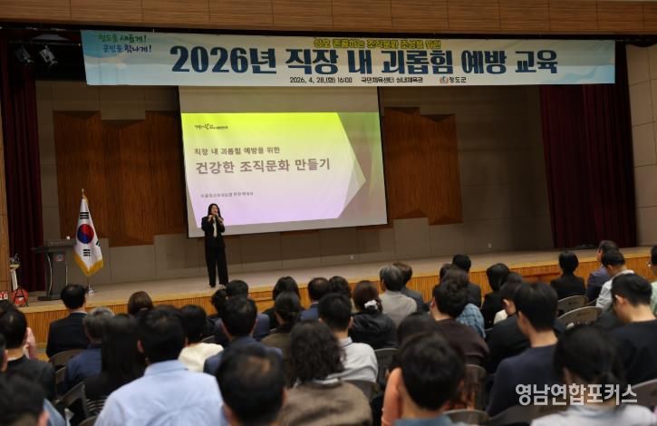 영남연합포커스 관리자 기자 | 청도군은 4월 28일 국민체육센터 실내체육관에서 김동기 청도군수 권한대행을 비롯한 간부 공무원과 전 직원이 참석한 가운데 ‘2026년 직장 내 괴롭힘 예방 교육’을 실시했다.