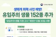 영남연합포커스 기자 | 생태계 피해 사전 예방! 유입주의 생물 152종 추가 - '유입주의 생물 지정 고시' 개정안 12월 30일 시행 ■ 지정대상 - 1,005종 (152종 추가) · 신규 지정 종: 어류(5종), 곤충(47종), 식물(100종) ■ 신규로 지정된 152종 수입하려는 경우 - 사전 관할 유역(지방)환경청 승인 필요 ※ 불법 수입 시 2년 이하 징역 또는 2천만원 이하 벌금 부과 ■ 확인방법 - 기후에너지환경부 누리집 및 한국외래생물정보시스템(2026년 1월 공개) 생태계 보전을 위해 유입주의 생물 수입에 각별한 주의를 기울여 주세요!
