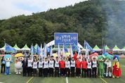 영남연합포커스 김진우 기자 | 남북9축고속도로 추진협의회는 2025년 10월 15일 영양 공설운동장에서 열린 제55회 영양군민 체육대회와 연계하여, 강원‧경북 10개 시‧군이 함께하는 ‘남북9축고속도로 조기건설 기원’ 연합 퍼포먼스를 개최했다. 행사는 ‘남북9축, 함께 잇다’ 슬로건 아래 강원·경북 10개 시‧군 대표단이 운동장 양 끝에서 동시에 출발, 중앙에 위치한 제막무대에서 하나로 모여 ‘남북9축 고속도로’ 표지판을 공동 제막하는 순으로 진행됐다. 서로를 향해 한 걸음씩 다가가는 발걸음은 그간의 기다림과 주민들의 간절한 염원을 한 화면에 압축했고, 제막의 순간에는 ‘더 가까워진 일상’에 대한 약속과 국가균형발전에 대한 분명한 메시지를 또렷이 전달했다. 특히 군민 1만여 명이 지켜보는 앞에서 펼쳐진 이번 퍼포먼스는 그 당위성과 가능성을 현장의 언어로 또렷이 시각화했다. 분산돼 있던 열 곳의 발걸음이 중앙에서 하나로 이어지며 “남북9축은 결국 하나의 길로 완성될 것”이라는 메시지를 강하게 각인시켰고, 질서정연한 진행과 뜨거운 호응 속에 행사는 마무리됐다. 남북9축고속도로는 강원 양구에서 경북 영