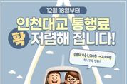 영남연합포커스 기자 | 12월 18일부터 인천대교 통행료 확 저렴해 집니다! - 승용차기준 5,500원 → 2,000원(약 63% 인하!) ■ 언제부터, 얼마나 달라지나요? 2025년 12월 18일 00시 부터 시행 인천대교 통행료 평균 인하폭은 63%… ■ 차종별 통행료 한눈에 보기 · 경차: (인하 전) 2,750원 → (인하 후) 1,000원(▼1,750원) · 소형: (인하 전) 5,500원 → (인하 후) 2,000원(▼3,500원) · 중형: (인하 전) 9,400원 → (인하 후) 3,500원(▼5,900원) · 대형: (인하 전) 12,200원 → (인하 후) 4,500원(▼7,700원) ■ 차종 한눈에 구별하기 (경차) · 배기량 1,000cc 미만 · 길이 3.6m·너비 1.6m·높이 2.0m 이하 (소형) · 승용차, 16인승 이하 승합차 · 2.5톤 미만 화물차 · 2축 차량 / 윤폭 279.4mm 이하 (중형) · 17인승 이상 버스 · 2.5톤 이상~10톤 미만 화물차 · 2축 차량 / 윤폭 279.4mm 초과 (대형) · 10톤 이상 대형 트럭