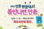 영남연합포커스 김진우 기자 | 안동시가 뚜벅이 여행객들의 교통 불편을 해소하고 맞춤형 자율여행을 지원하기 위해 ‘안동 관광택시’ 활성화 사업을 추진한다. 시는 ‘2026 경북 방문의 해’를 기념해 내·외국인 관광객 1팀당 3만 원의 요금 할인 혜택을 제공한다. 특히 3월 10일부터 예산 소진 시까지 진행되는 ‘틈만나면, 안동’ 캠페인 기간과 사계절 축제 기간에는 추가로 3만 원이 할인돼 이용객은 최대 6만 원까지 요금 할인을 받을 수 있다. 또한 안동 벚꽃축제(4. 1. ~ 4. 5.)와 경북도민체육대회(4. 3. ~ 4. 6.)가 열리는 4월에도 봄맞이 요금할인 프로모션을 진행해 최대 60,000원의 요금을 할인, 관광객 유치에 나설 계획이다. 안동 관광택시의 기본요금은 5시간 기준 12만 5천 원(승합 30만 원)이다. 각종 할인 이벤트와 예약 안내, 추천 관광코스 등 상세한 내용은 안동 관광택시 누리집 또는 (사)안동시관광협의회를 통해 확인할 수 있다. 안동시 관계자는 “요금 할인뿐만 아니라 기사 역량 강화 교육과 차량 관리 등 서비스 품질 향상에도 만전을 기하고 있다”며, “앞으로도 체류형