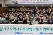 영남연합포커스 김종설 기자 | 대구 달서구는 20일 달서구청에서 달서구지역사회보장협의체 위원 200여 명을 대상으로 '2026년 달서구지역사회보장협의체 사업안내 및 역량강화 교육'을 실시했다. 달서구지역사회보장협의체는 750여 명의 위원으로 구성된 민관협력 네트워크로, 지역사회보장계획을 함께 수립·추진하고 모니터링과 평가를 수행하는 등 지역 복지정책의 핵심 역할을 맡고 있다. 또한 23개 동 특화사업을 통해 위기가구를 발굴하고 필요한 복지서비스를 연계·지원하고 있다. 이번 교육은 지역사회보장계획 수립과 운영에 기여한 유공자 시상을 시작으로, ▲ 2026년 연간 일정 및 주요 민관협력사업 안내 ▲ 전국대회 우수사례 공유 ▲ 자살예방 인식개선 교육 순으로 진행됐다. 달서구는 이번 교육을 통해 협의체 위원들의 실무 이해도를 높이고 현장 중심의 실천 역량을 강화하는 데 중점을 뒀다. 특히 2025년 지역사회보장협의체 전국대회 우수사례로 선정된 ‘달서한의방문진료사업’이 소개돼 큰 관심을 끌었다. 해당 사업은 취약계층 어르신을 대상으로 의료와 복지를 연계한 맞춤형 지원 모델로, 현장